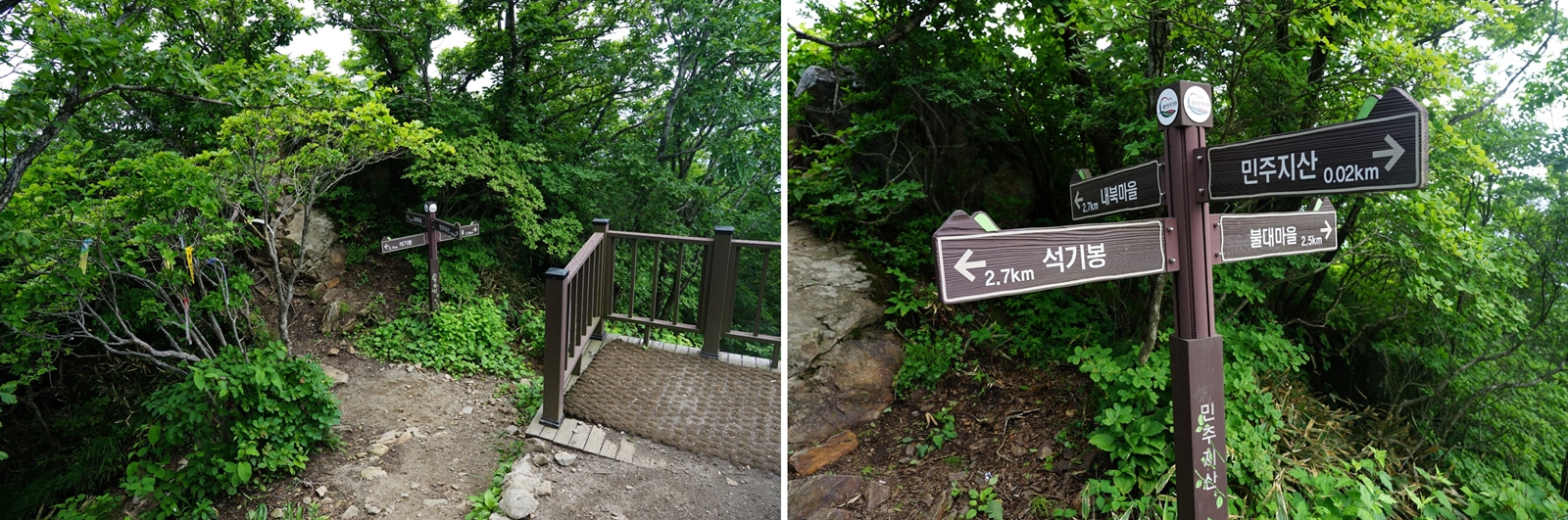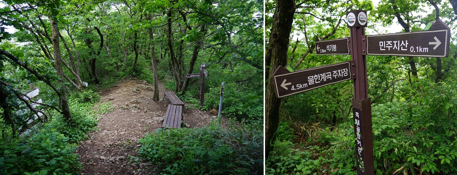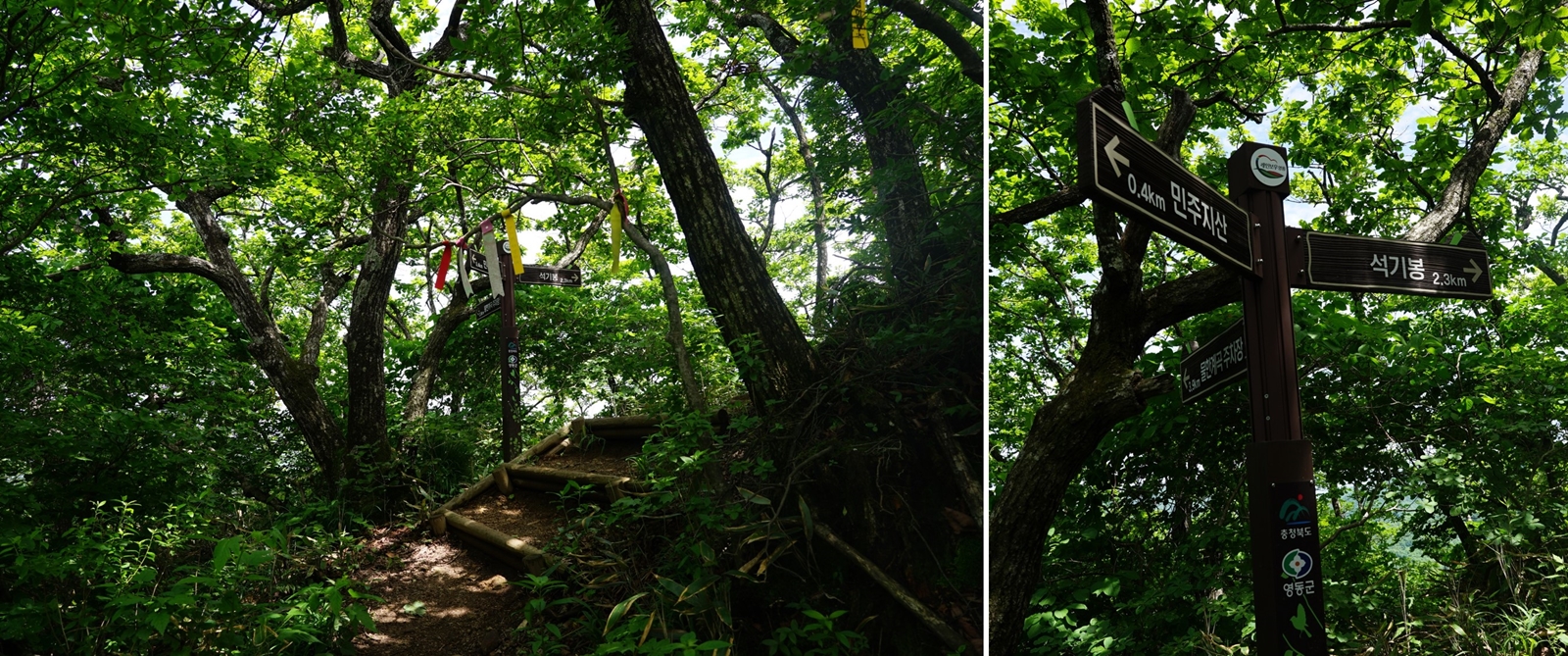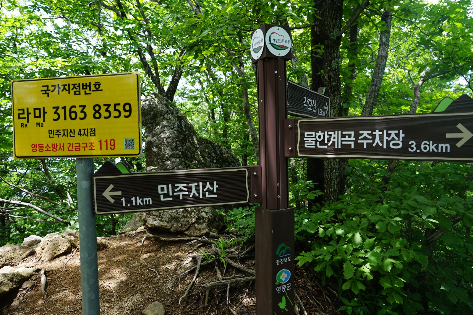 이정표는 민주지산 표식이 보이는데