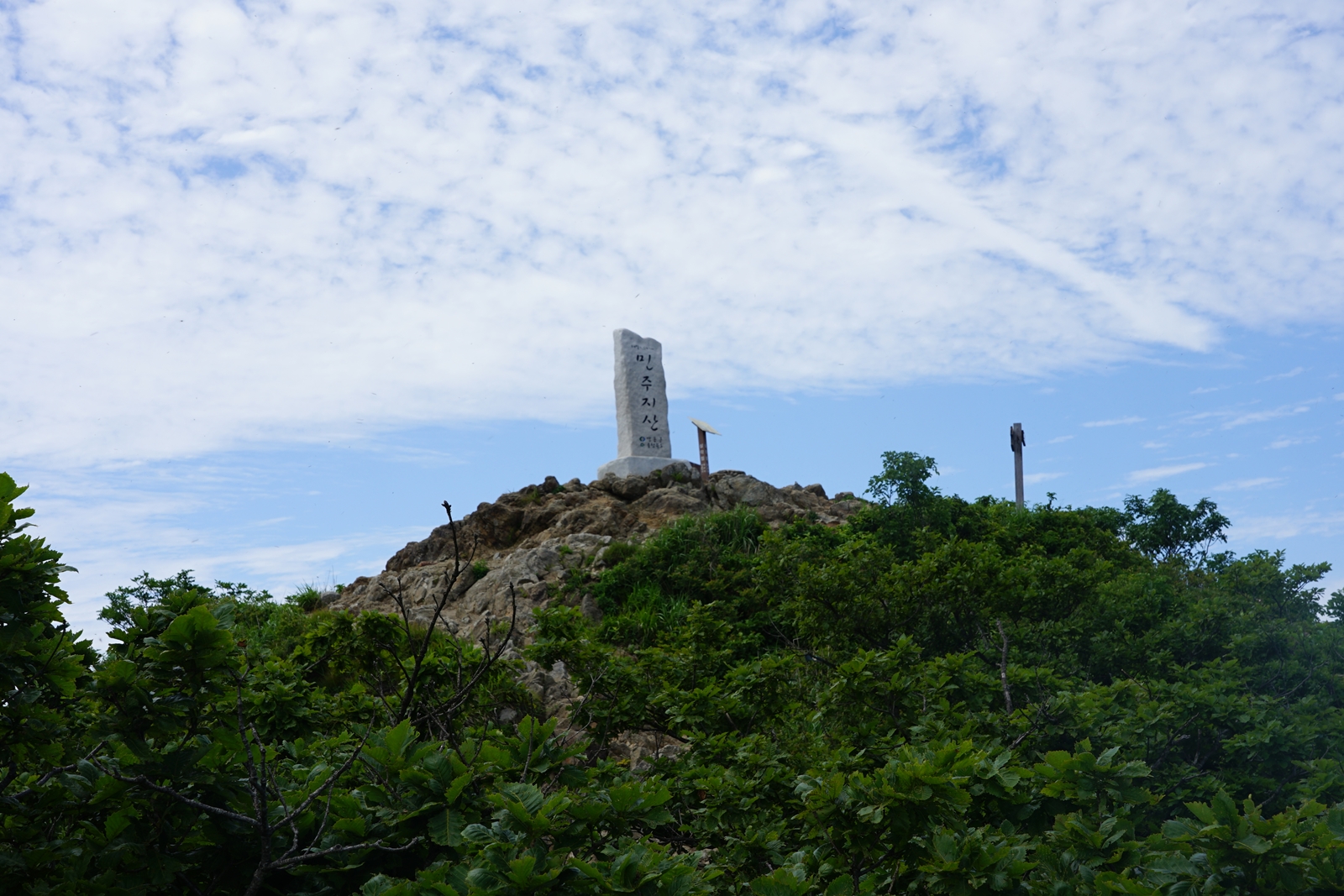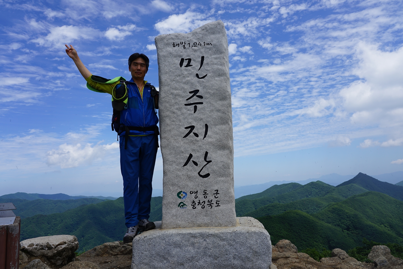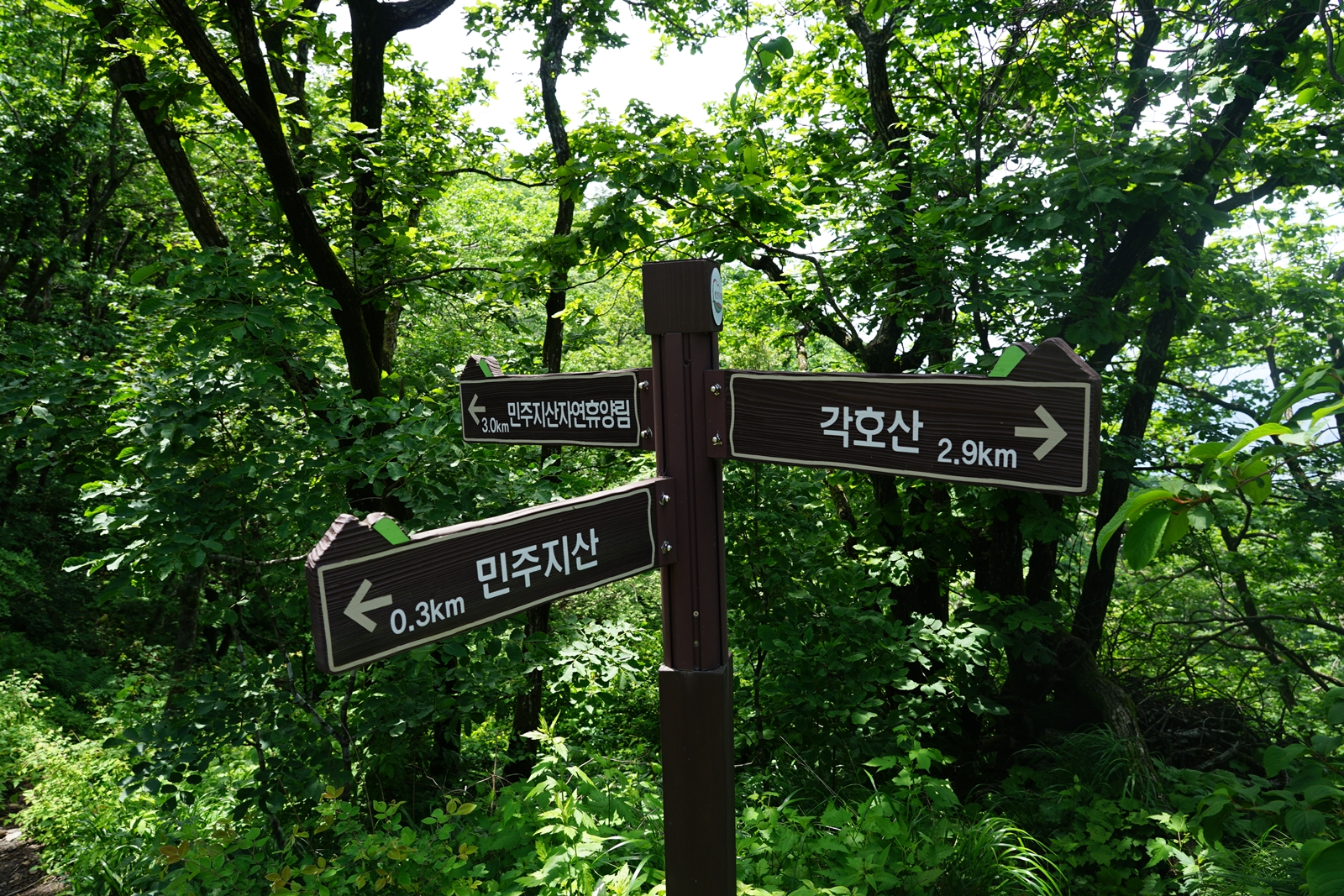 이정표는 민주지산 표식이 보이는데