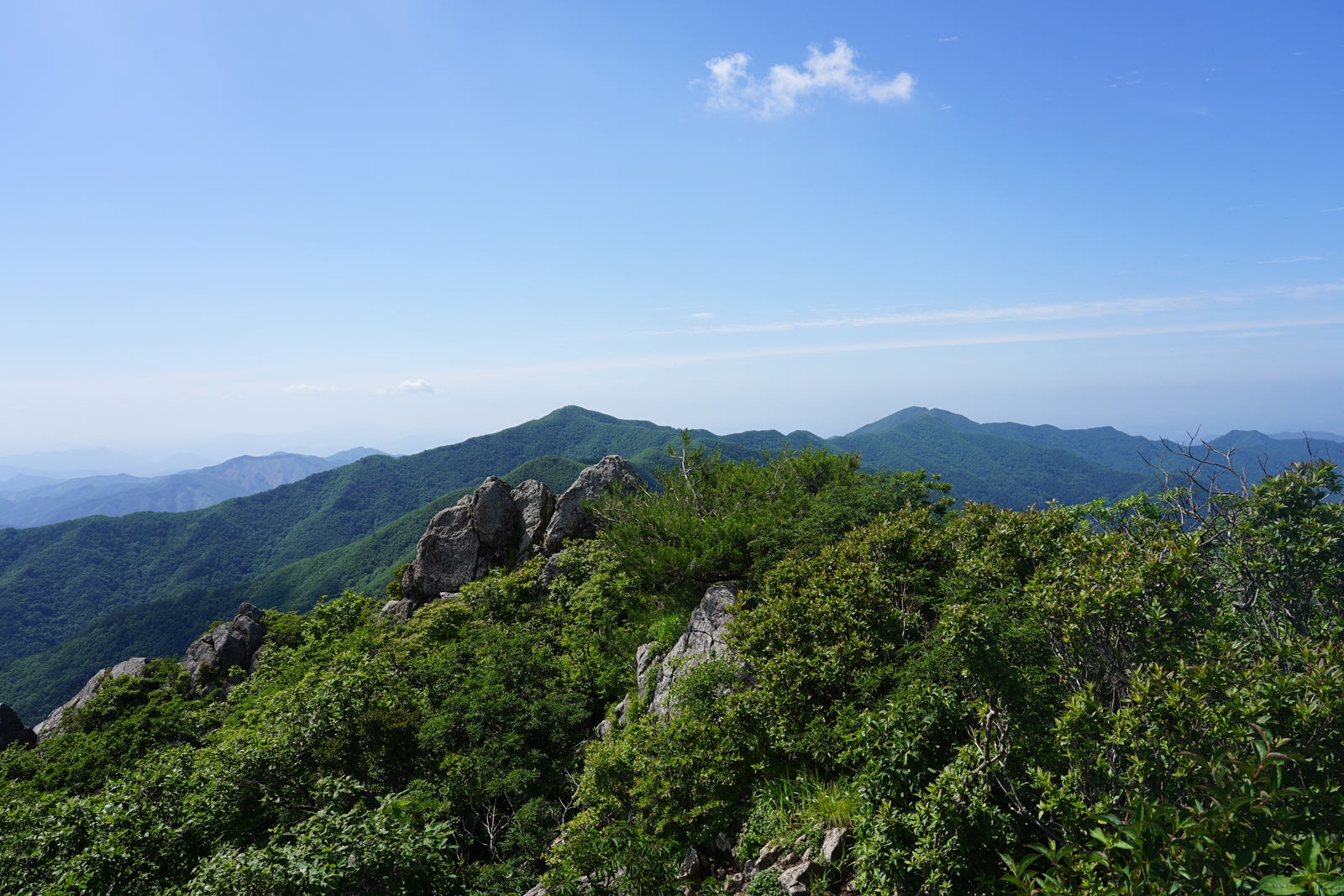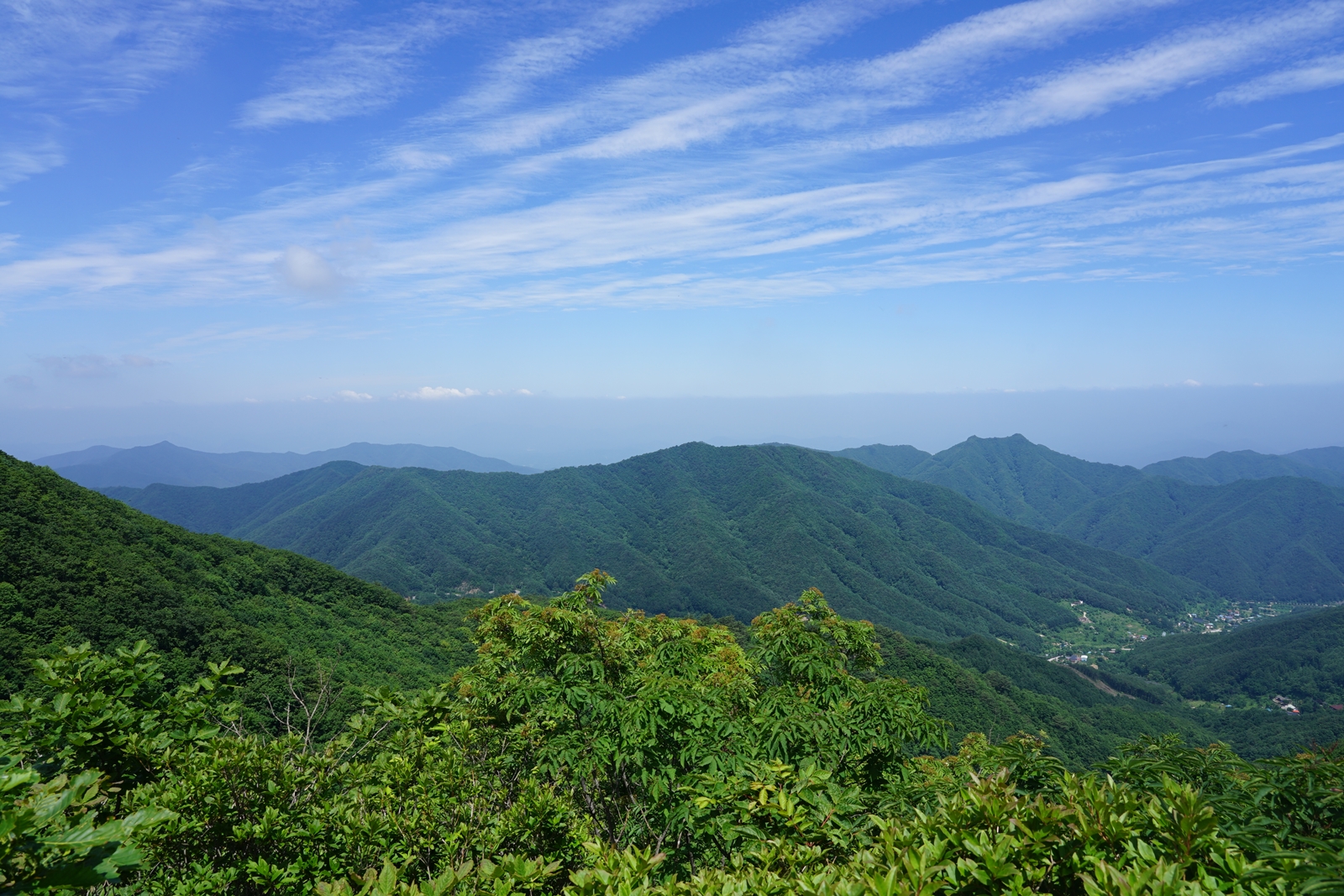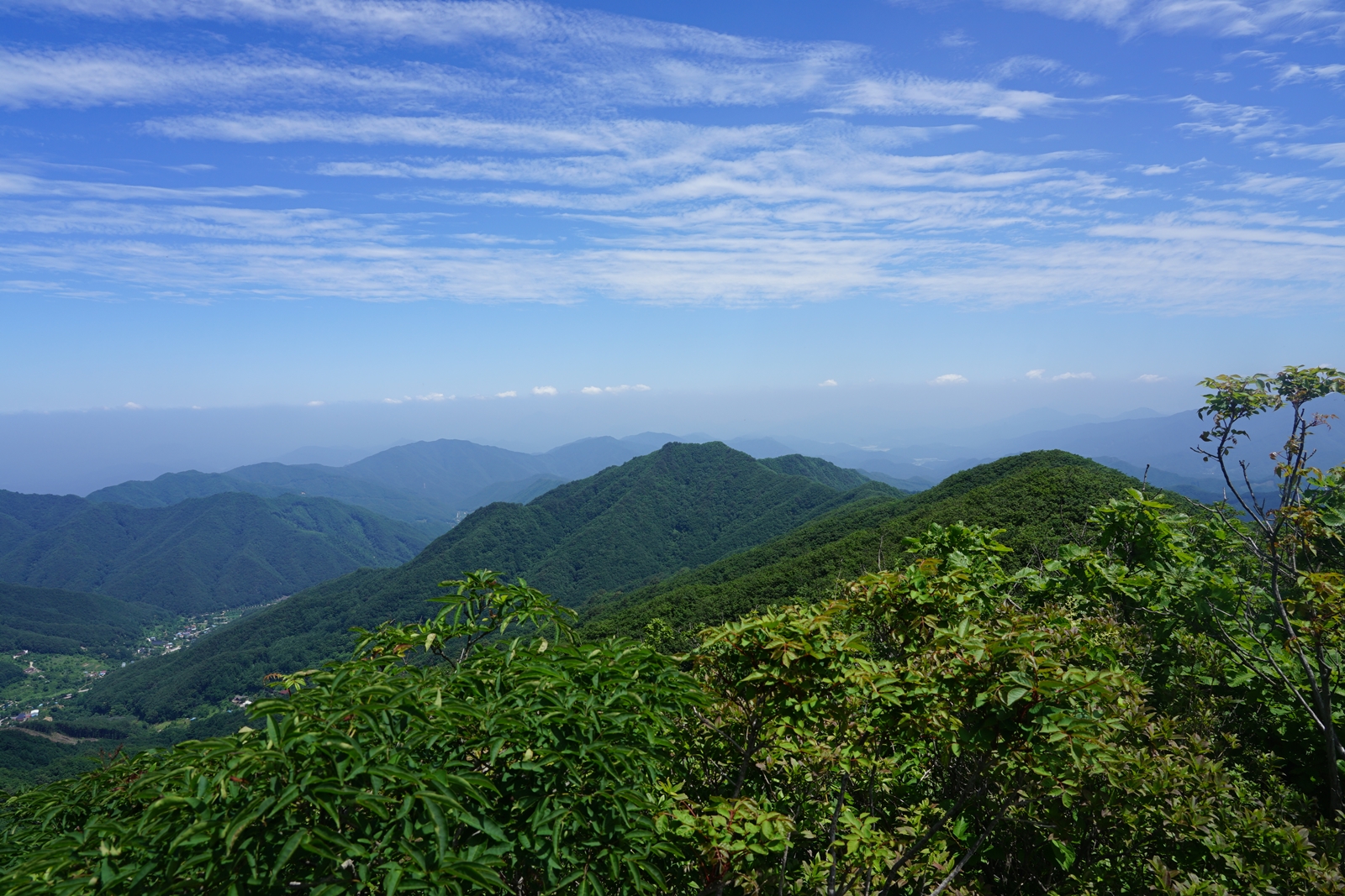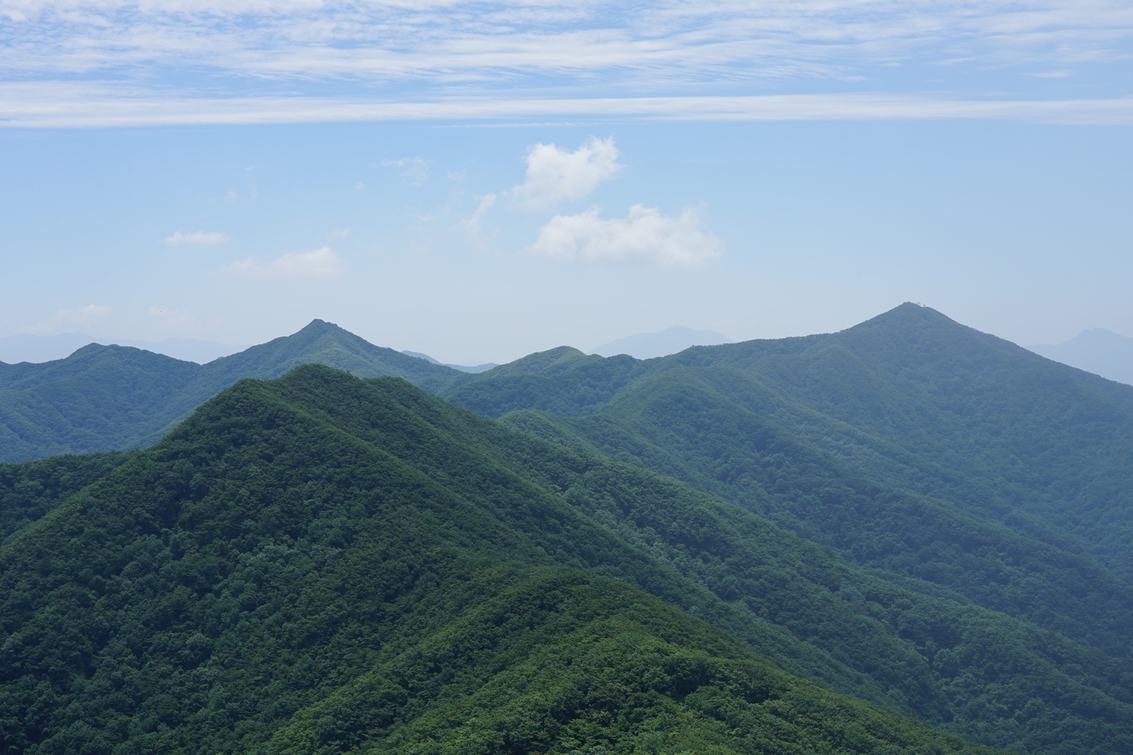 백두대간 푯대봉 서측 1047.4봉 너머 구름띠가