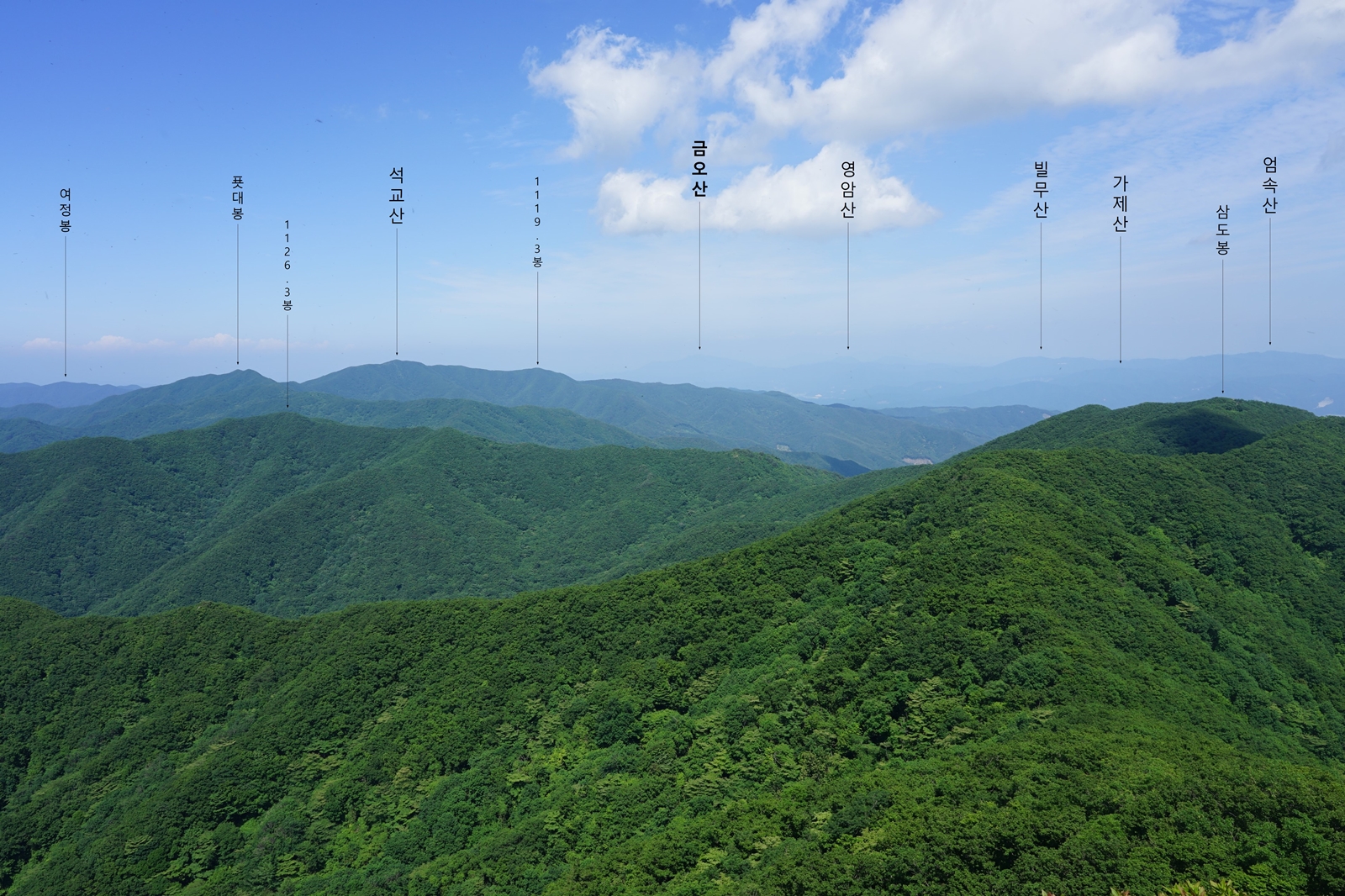 남으로 석기봉~삼도봉 등