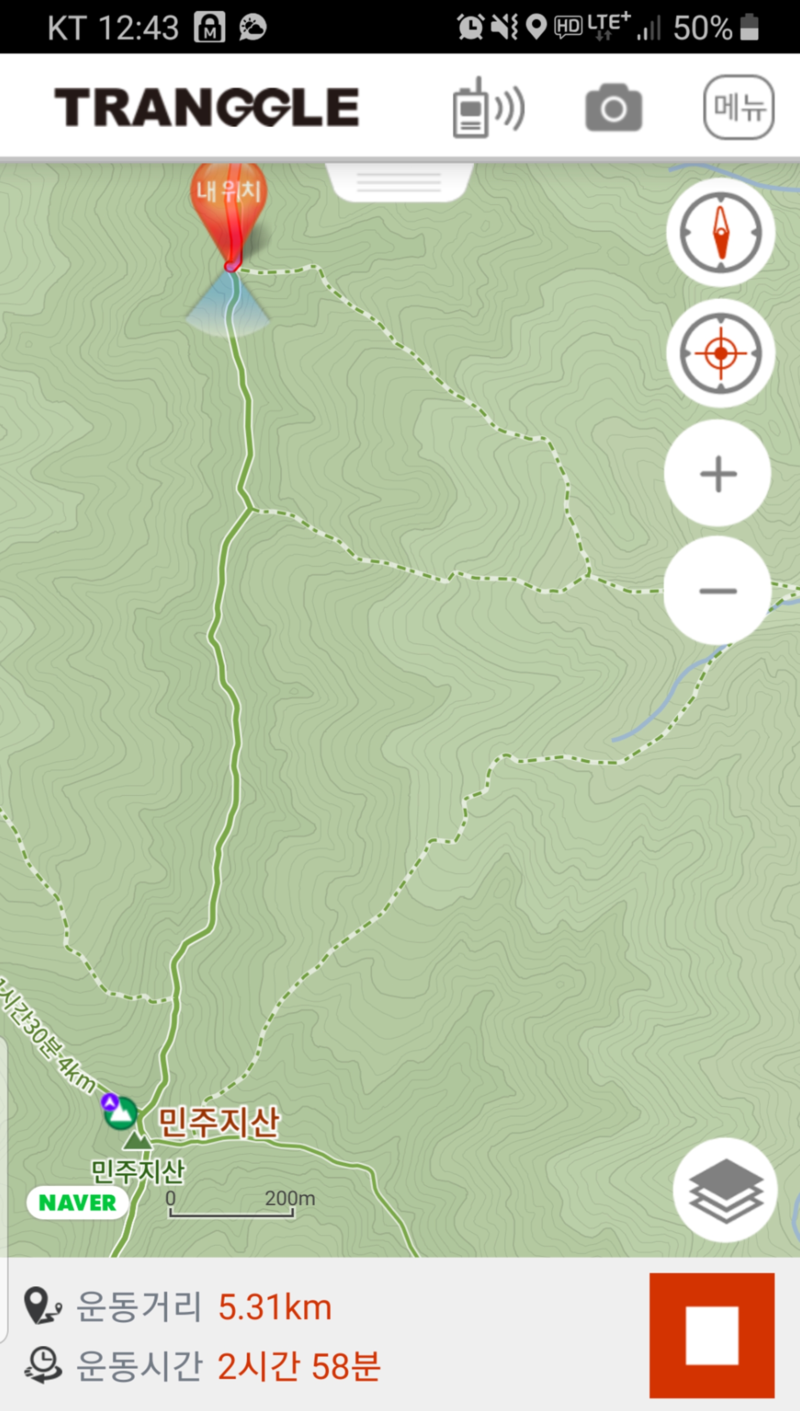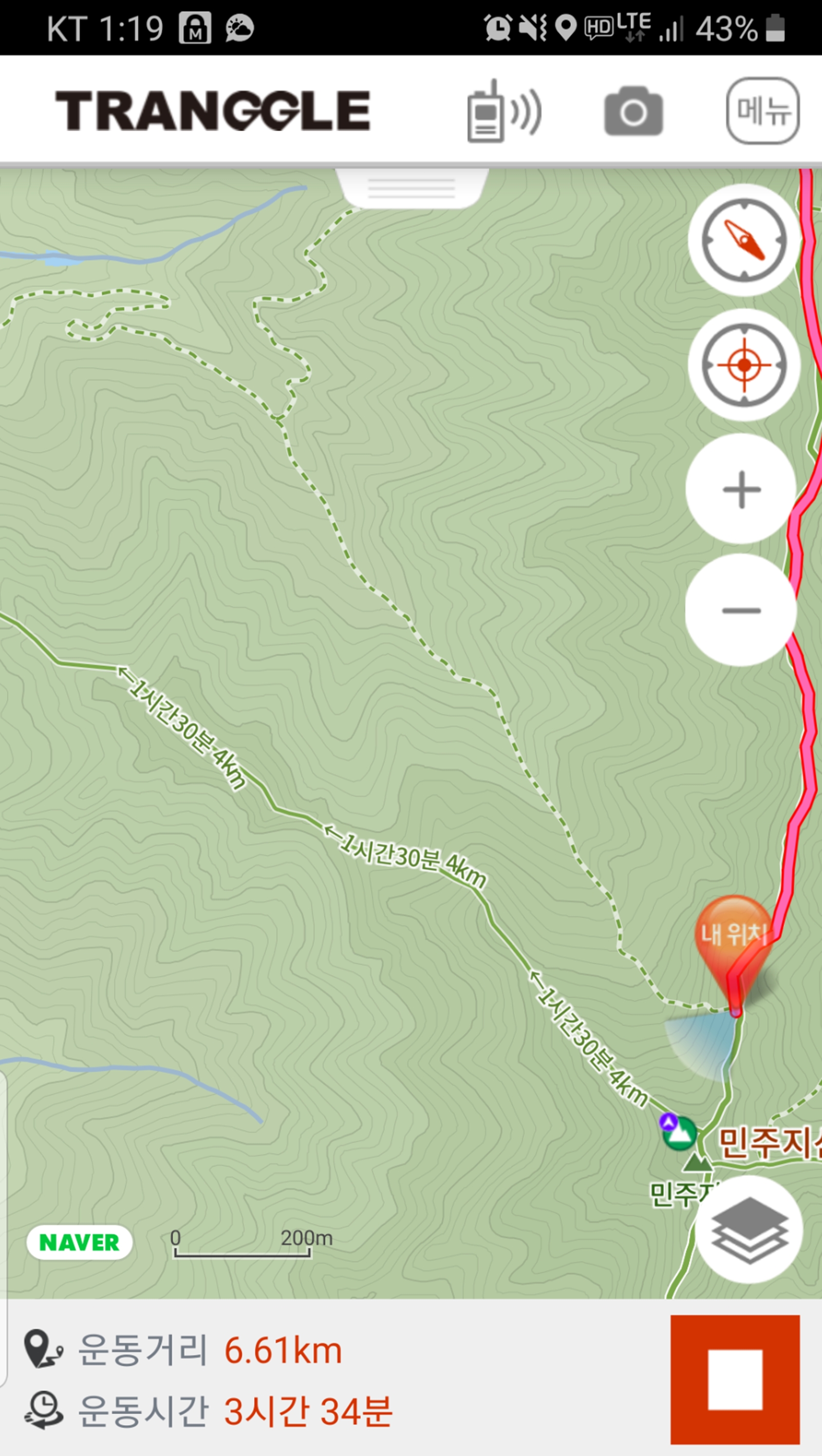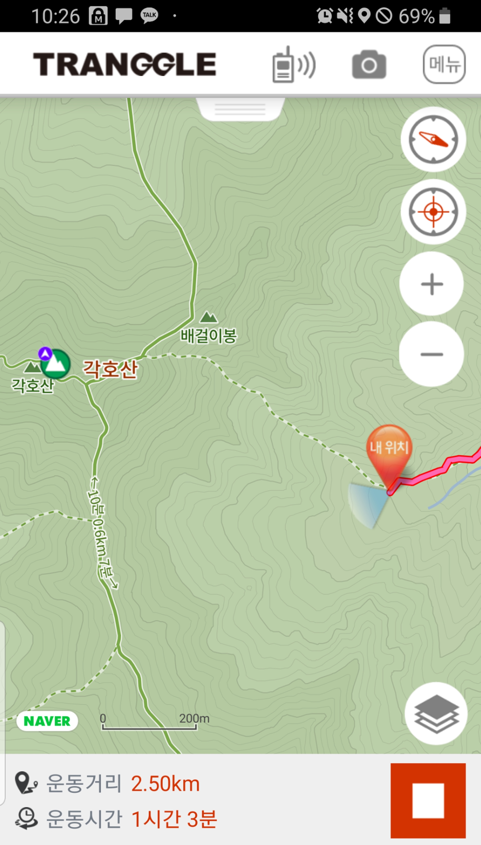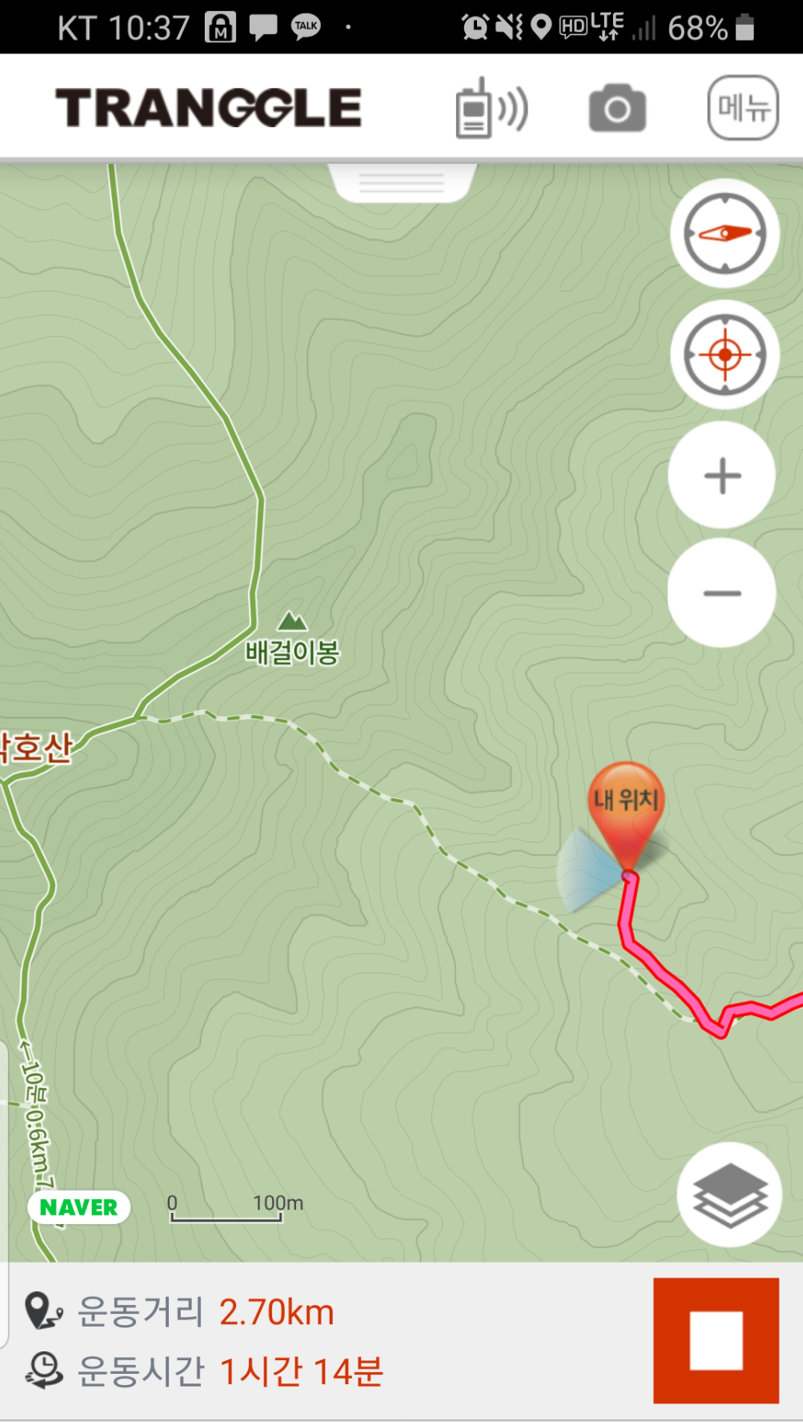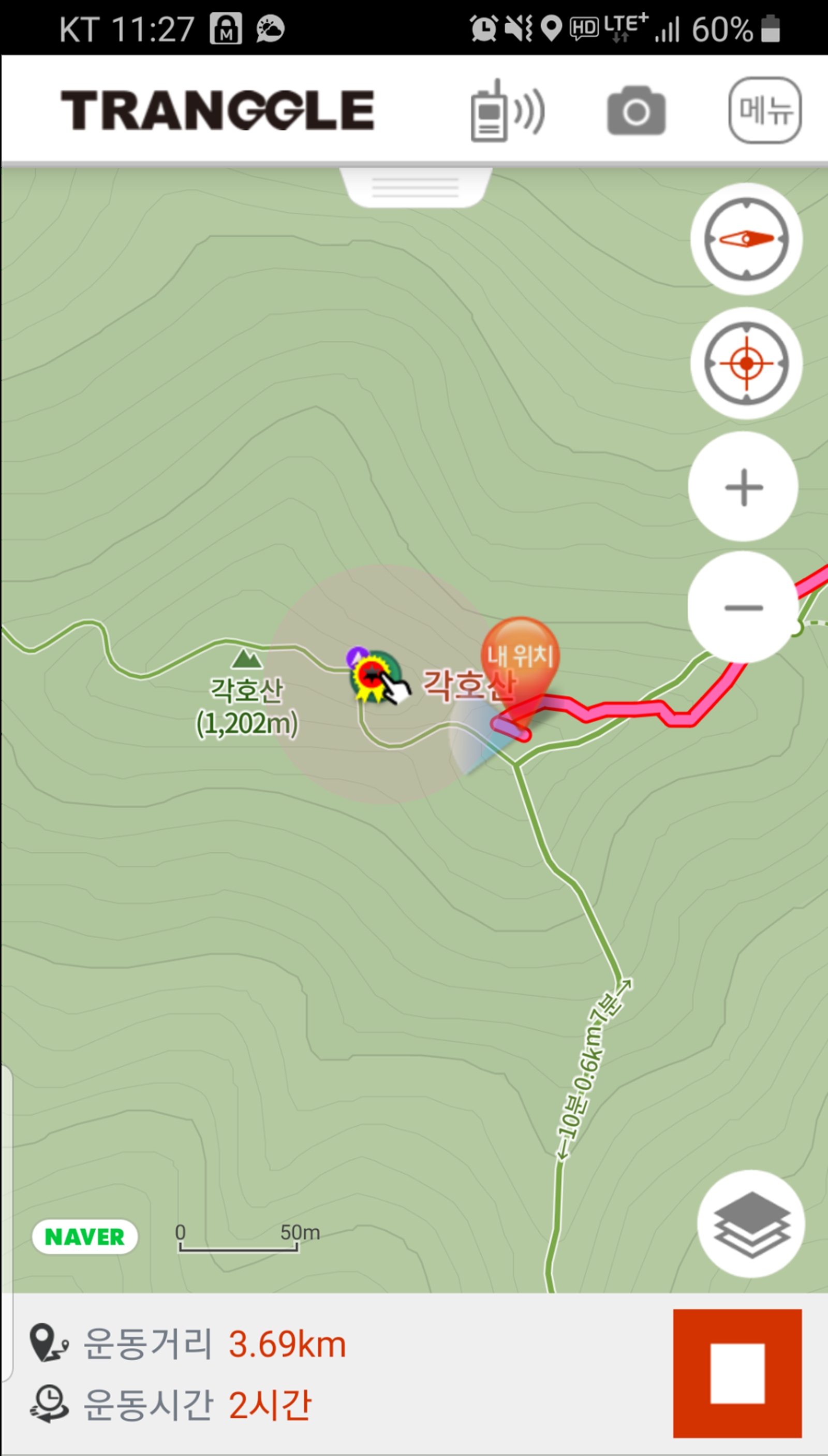 등산로에서 벗어난 것으로 표기된다