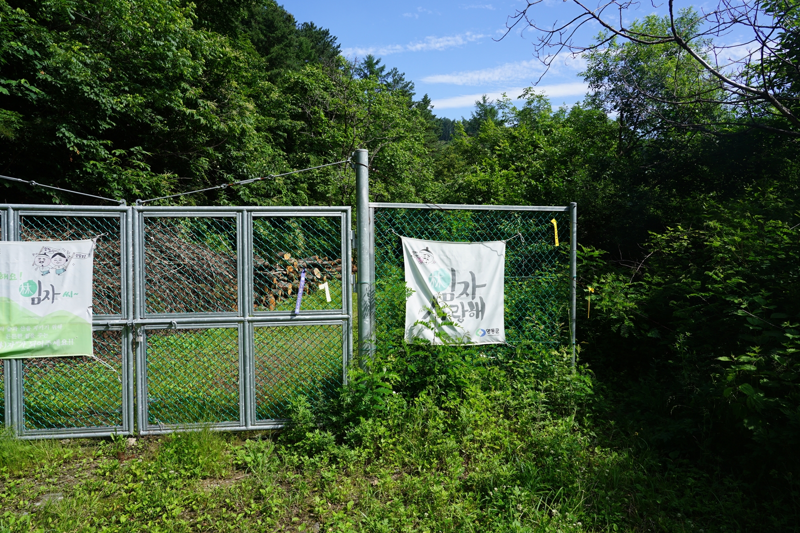 임도 입구를 철문으로 막아 놓은