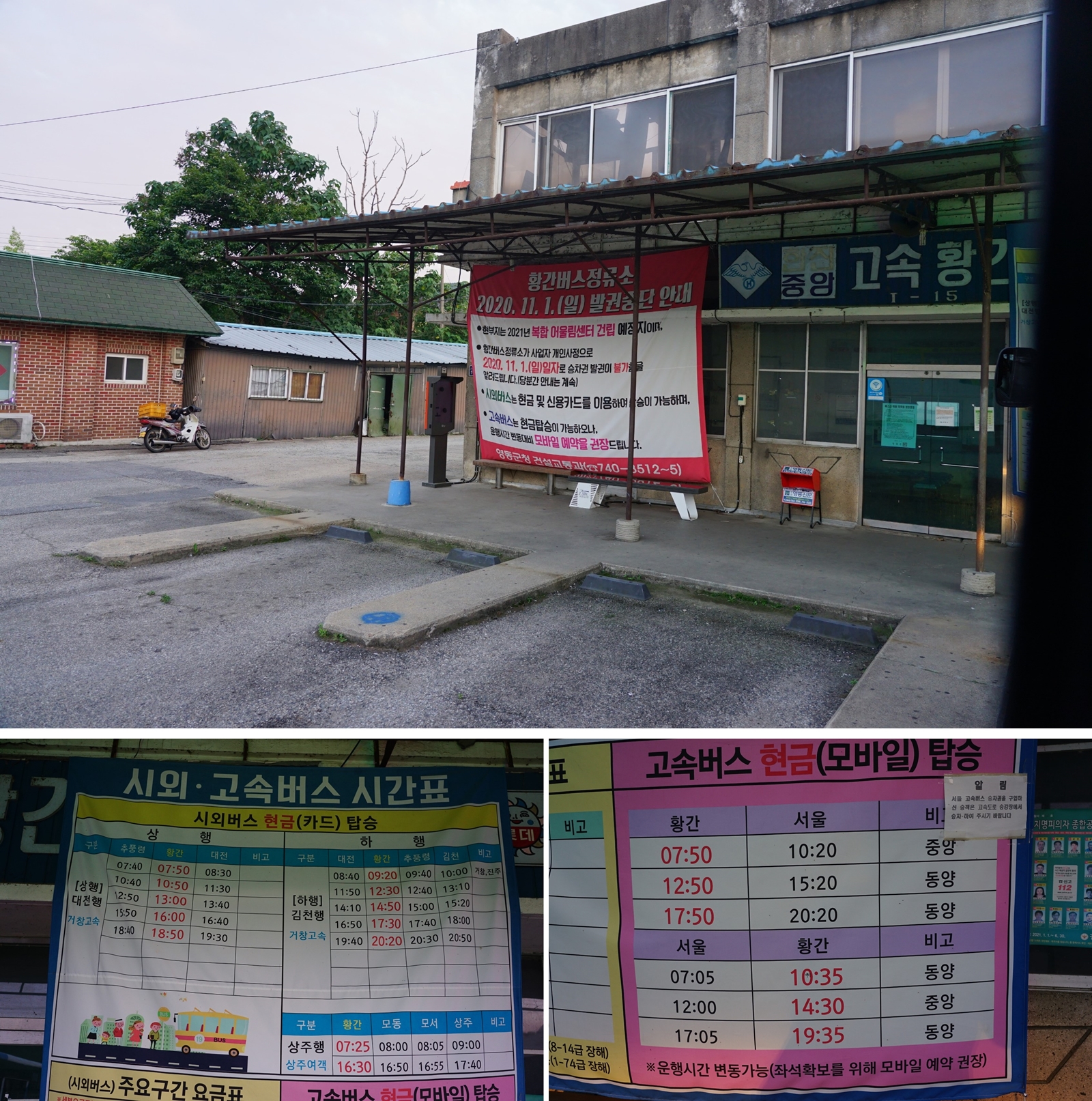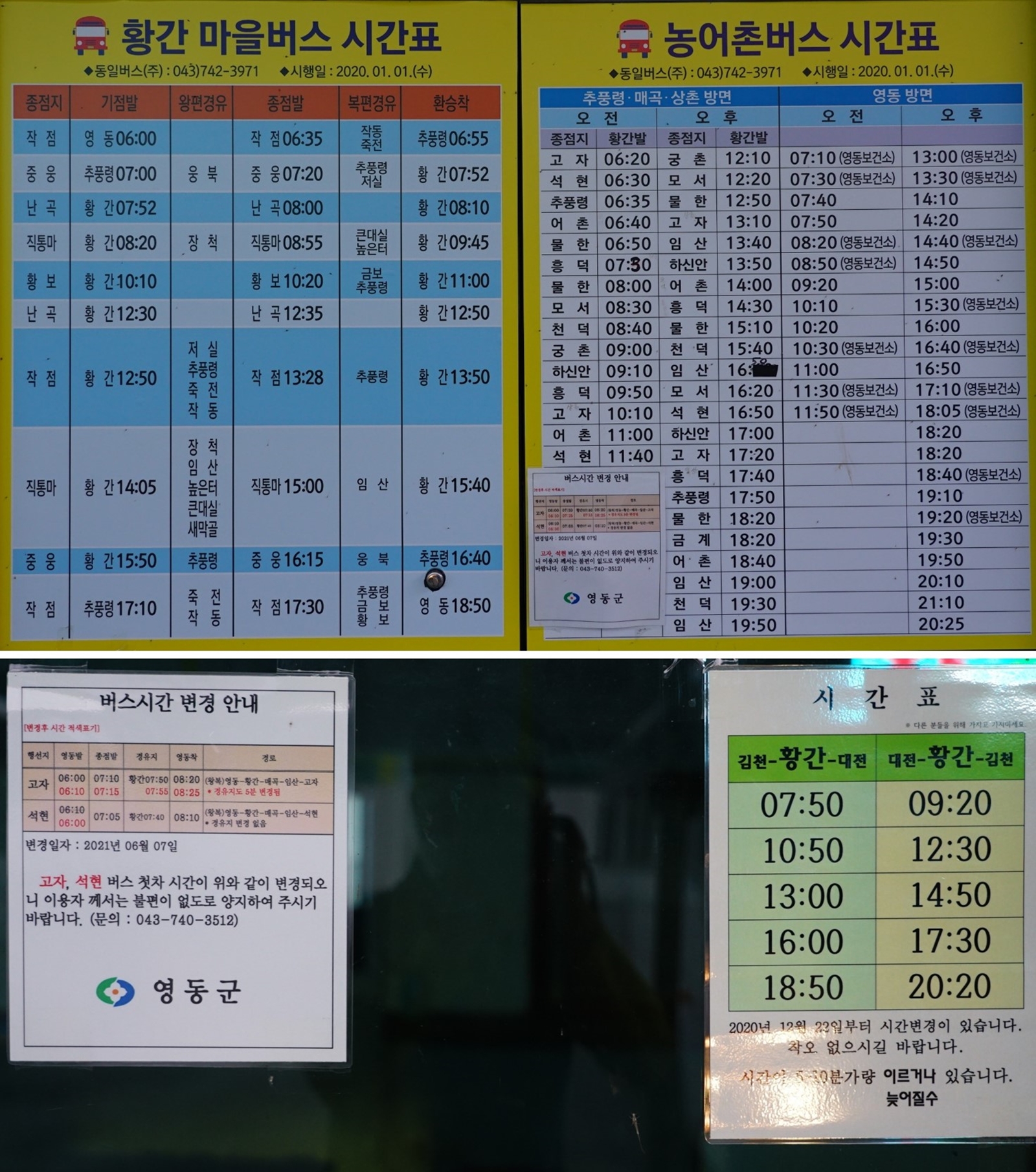 >> 황간 터미널에 있는 버스시간표