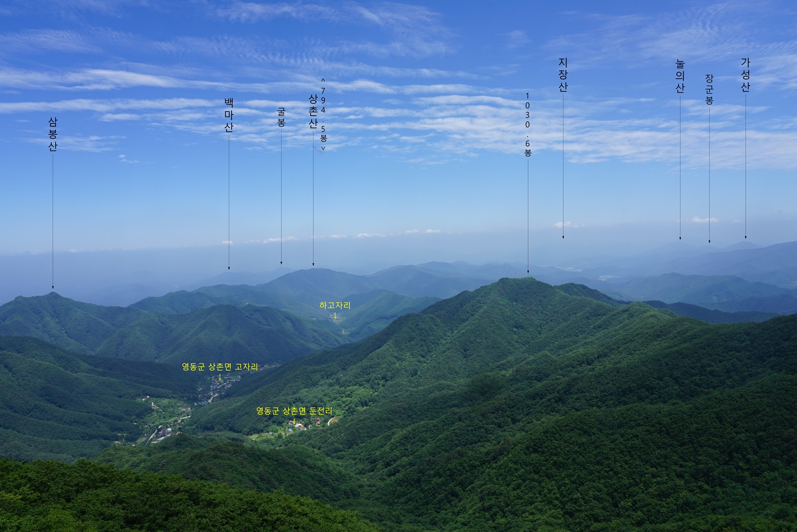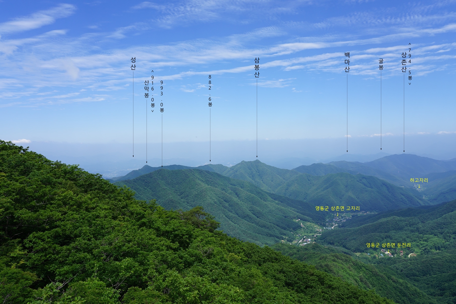 >> 영동군 상촌면 고자리에서 올라가는 능선길이 있다고 하지만