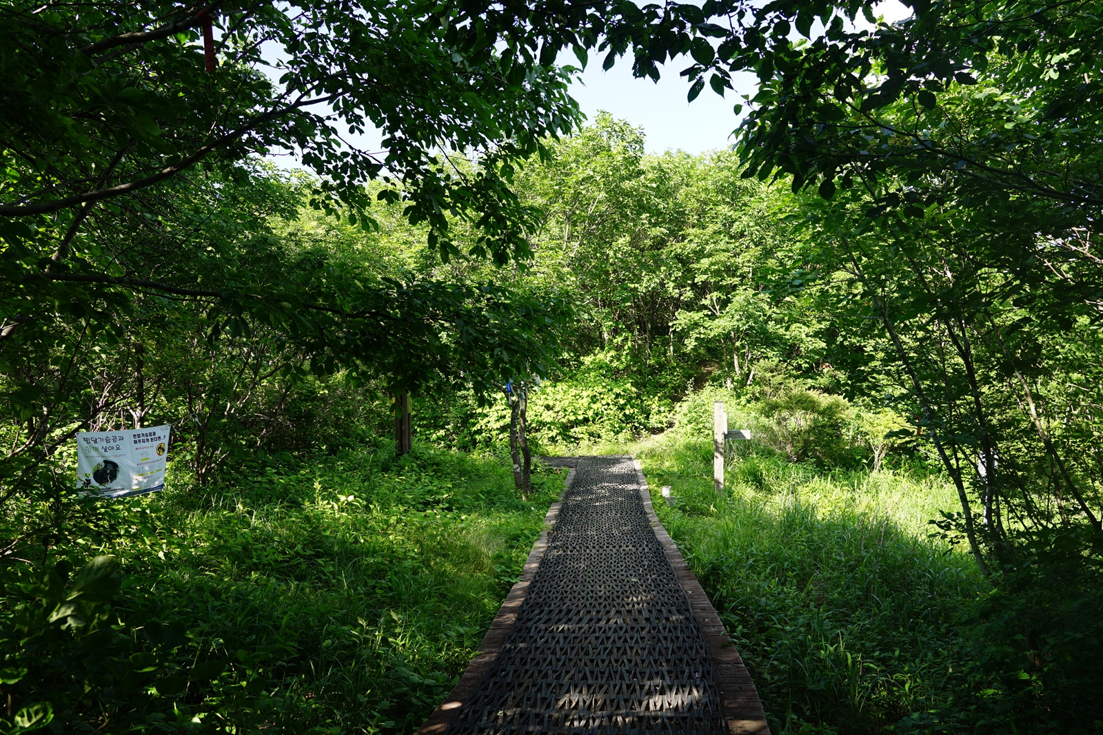잣나무숲 삼거리에서 보이는 목교 표식은