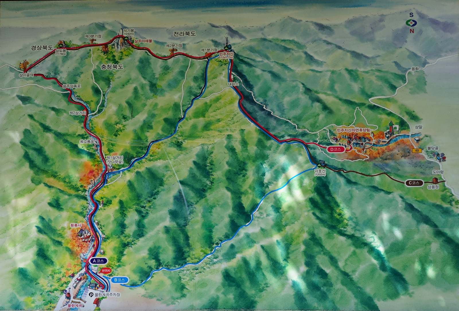 등산안내도에 음주암폭포 주변에서