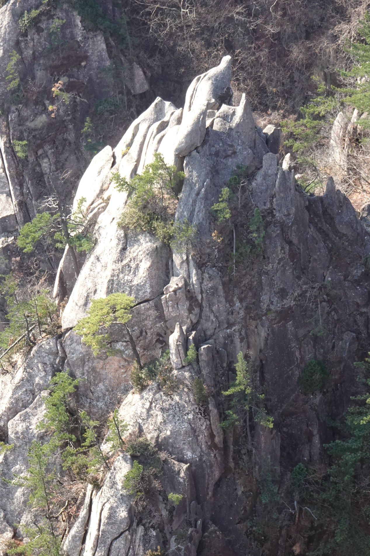 사람의 옆모습을 닮은 바위가 많이 보인다.