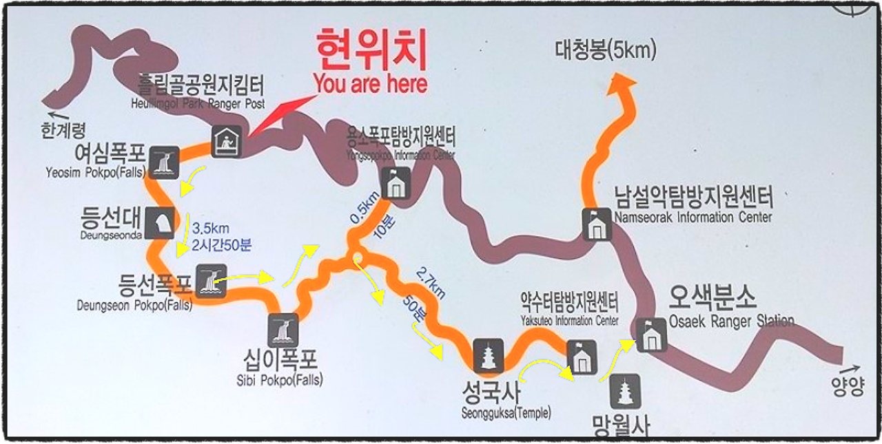 흘림골이 이곳에서 분기됨을 알 수 있다.